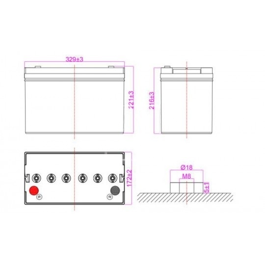 - Capacidad nominal: 124 Ah C100 / 12 V. (C100 = 100 horas)