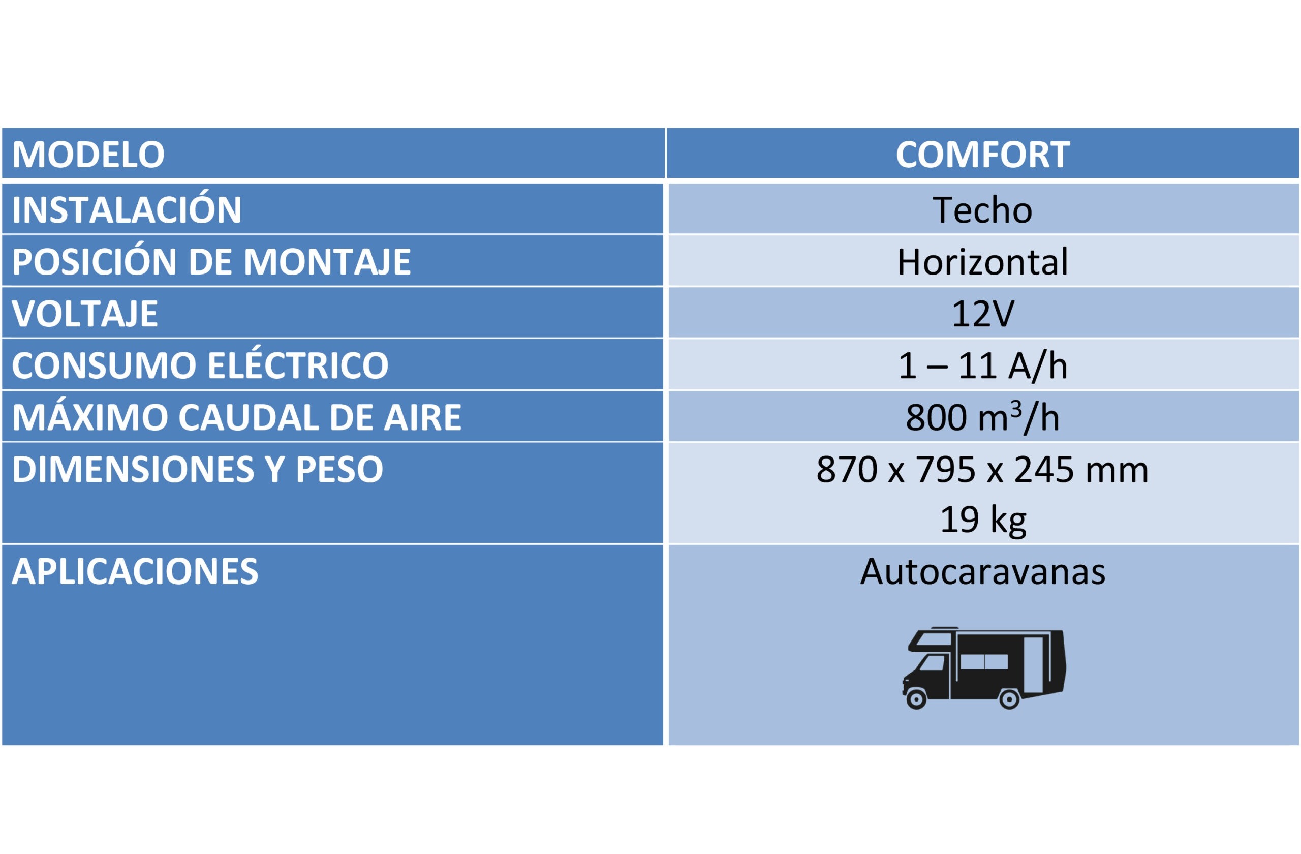 - Aplicaciones: Autocaravanas, vehículos de recreo, campers, caravanas, etc.