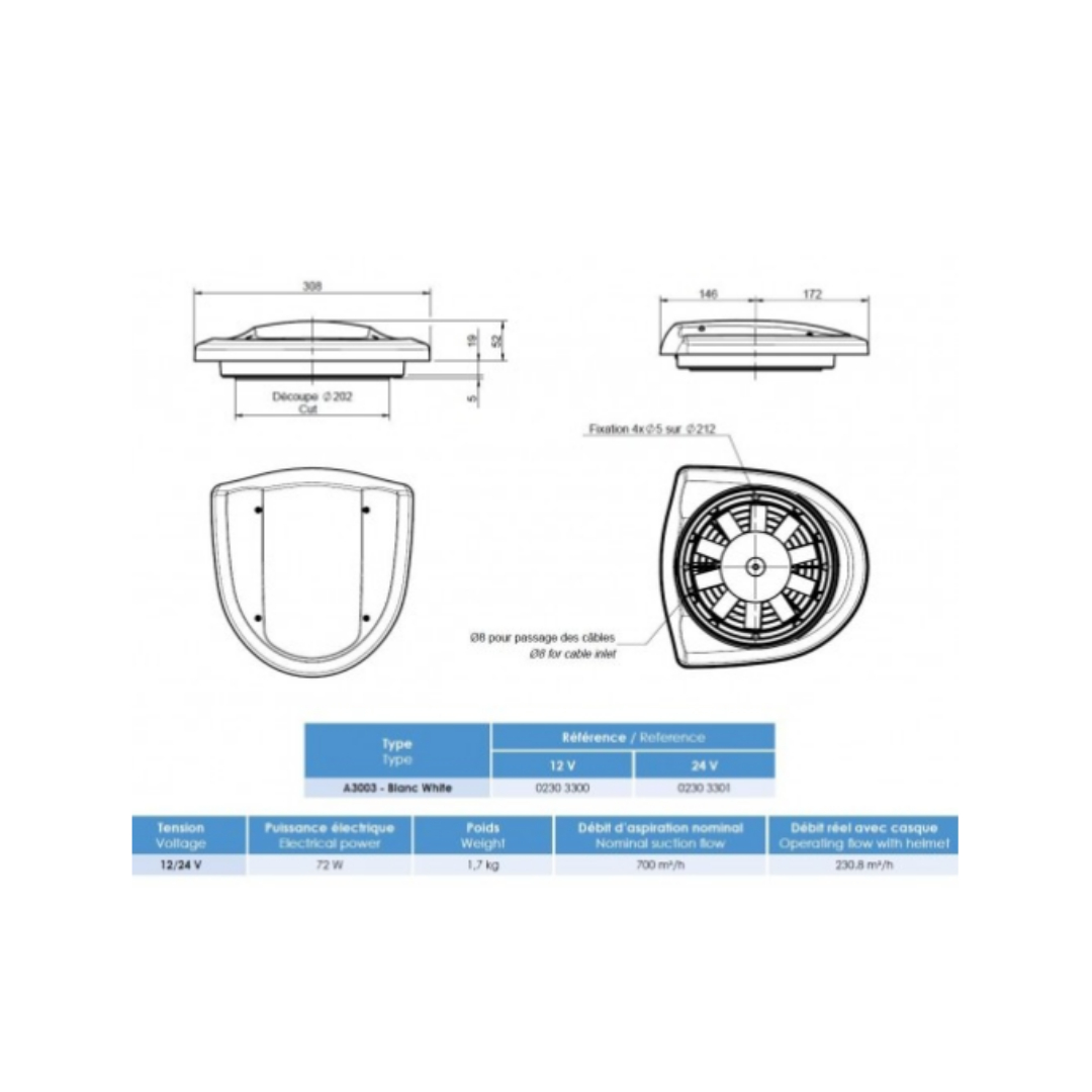 Fabricado en plástico de polietileno, con casco ABS anti UV de alta duración.