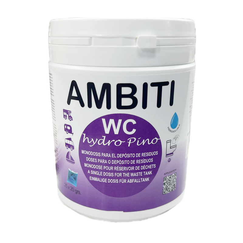 ¿Te imaginas llevar siempre contigo la frescura de los bosques canarios? Con AMBITI HYDRO PINO, experimentarás una sensación de inmensidad que evoca lugares como Tamadaba, Vilaflor o Garafía, gracias a su agradable aroma a pino. Estas 25 bolsitas monodosis hidrosolubles, diseñadas para inodoros químicos portátiles, cassettes y depósitos de aguas negras, son la clave para disfrutar de tu aventura al aire libre sin renunciar a la comodidad ni a la higiene.