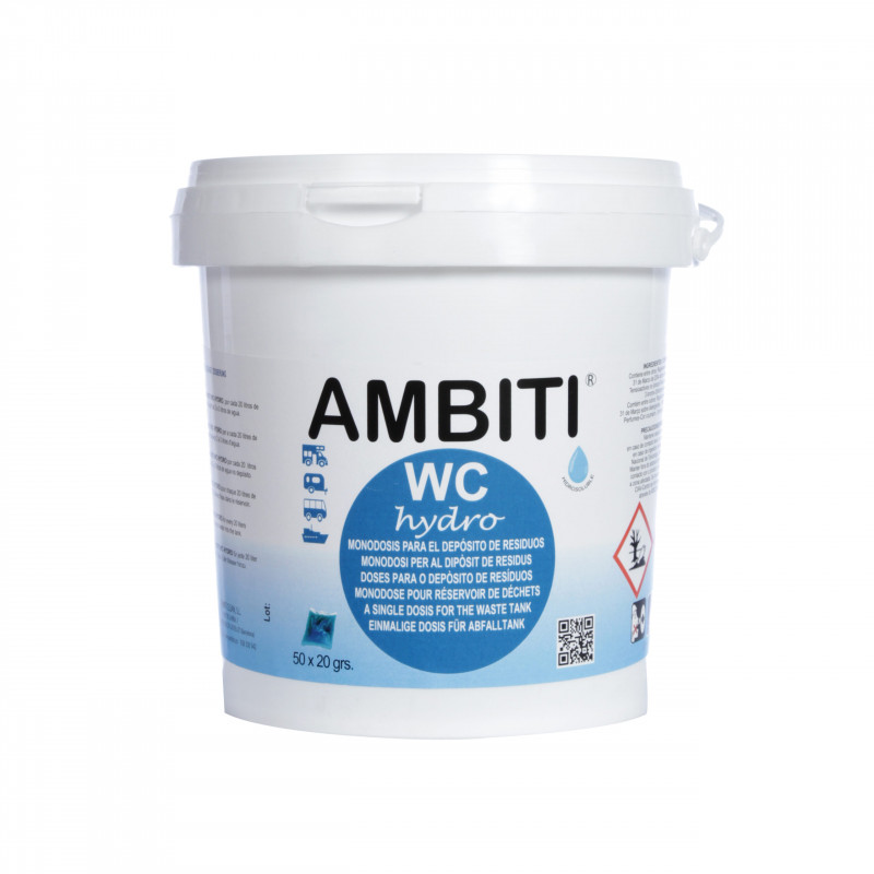Optimiza tu experiencia de camping y caravaning con AMBITI HYDRO, las bolsitas monodosis hidrosolubles y perfumadas, perfectas para mantener la frescura en inodoros químicos portátiles, cassettes y depósitos de residuos. Este producto es la solución ideal para aquellos que valoran la limpieza y el confort en sus aventuras al aire libre, asegurando un manejo eficiente y agradable de las instalaciones sanitarias.