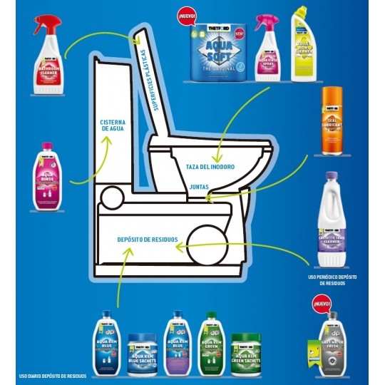 Aditivo para el depósito de residuos de inodoros muy potente y de fácil uso.