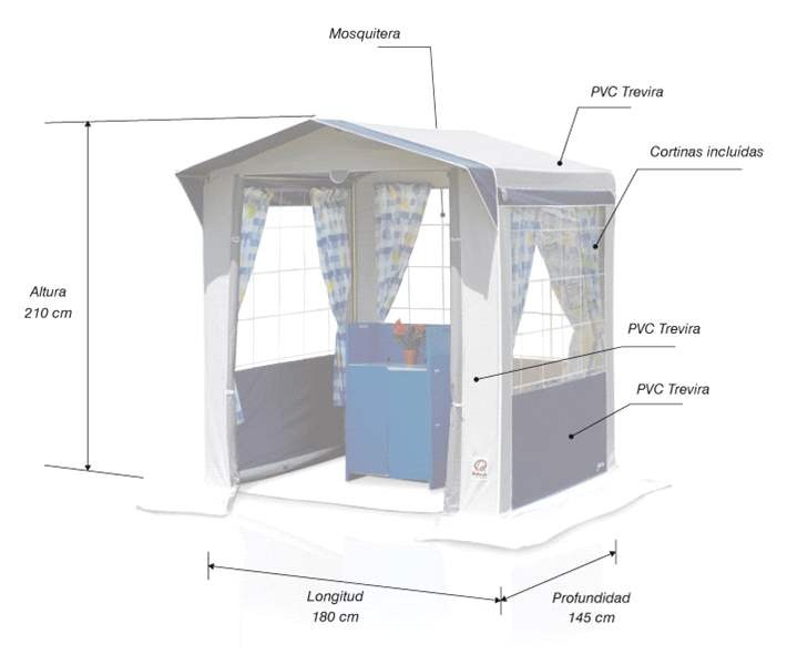 - Dimensiones: 180 x 145 x 210 (largo x ancho x alto cm).