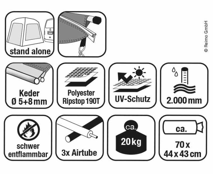 - Material: poliéster ripstop 75D / 190T, revestimiento de protección UV.