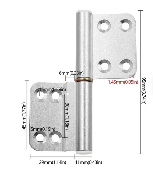 Bisagra Universal de Aluminio 2 Aletas Planas (95x29mm)
