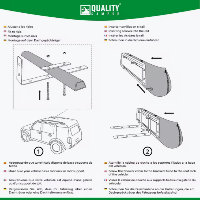 - Montaje Rápido y Sencillo: Olvídate de instalaciones complicadas. La cabina se fija directamente a la mayoría de bacas o barras de techo de tu vehículo. En solo un par de minutos, tendrás tu espacio privado listo para usar.