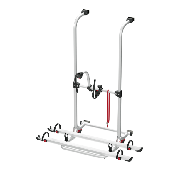 El Fiamma Carry-Bike Pro es el portabicicletas de referencia para autocaravanas, combinando resistencia, versatilidad y un diseño inteligente que facilita el transporte de hasta 4 bicicletas (2 de serie, ampliable). Su estructura telescópica de aluminio, con tubos de sección ovalada y terminaciones en color negro, no solo ofrece una estética moderna, sino también una robustez excepcional.