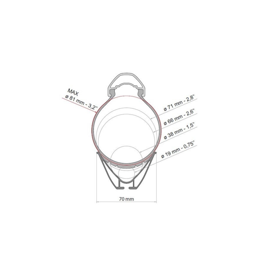 Fijación inferior a la parte inferior de la puerta trasera gracias al perfil calandrado que sigue el contorno del vehículo.