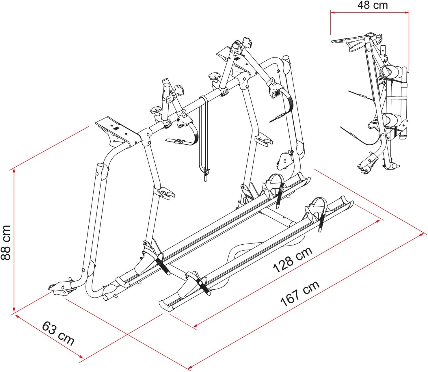 - Capacidad Ampliable Inteligente: Transporta cómodamente 2 bicicletas de serie, pero está preparado para llevar hasta 4 bicicletas añadiendo los raíles y Bike-Blocks opcionales específicos (ver accesorios).