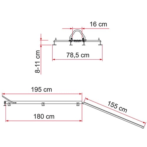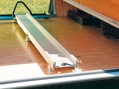 Porta moto deslizable con 2 carriles telescópicos en aluminio anodizado con cinta antideslizante.
