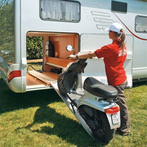 Sistema de porta-moto ideal para las autocaravanas con garaje.