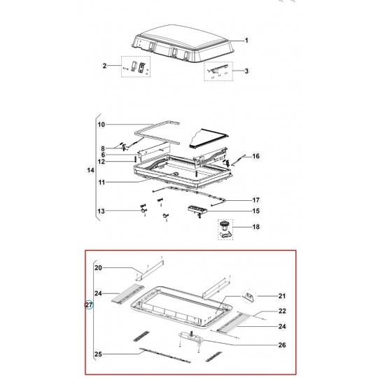 Repuesto original de marco interno con mosquitera y oscurecedor para claraboya.