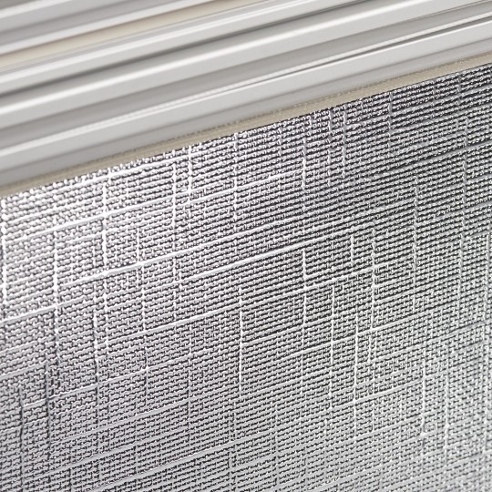 Estor con revestimiento de aluminio en la parte exterior para aumentar el efecto de aislamiento térmico.