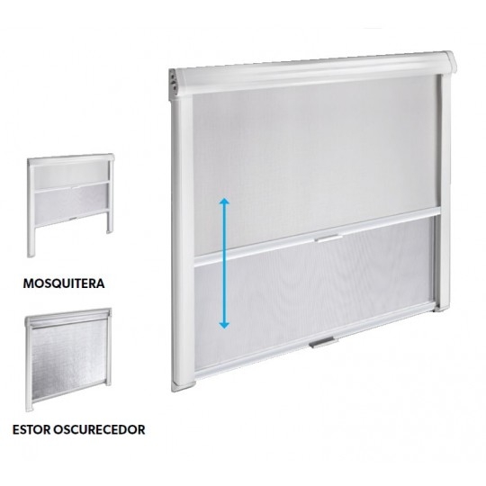 Estor y mosquitera ajustables por separado y bloqueables en diferentes posiciones.