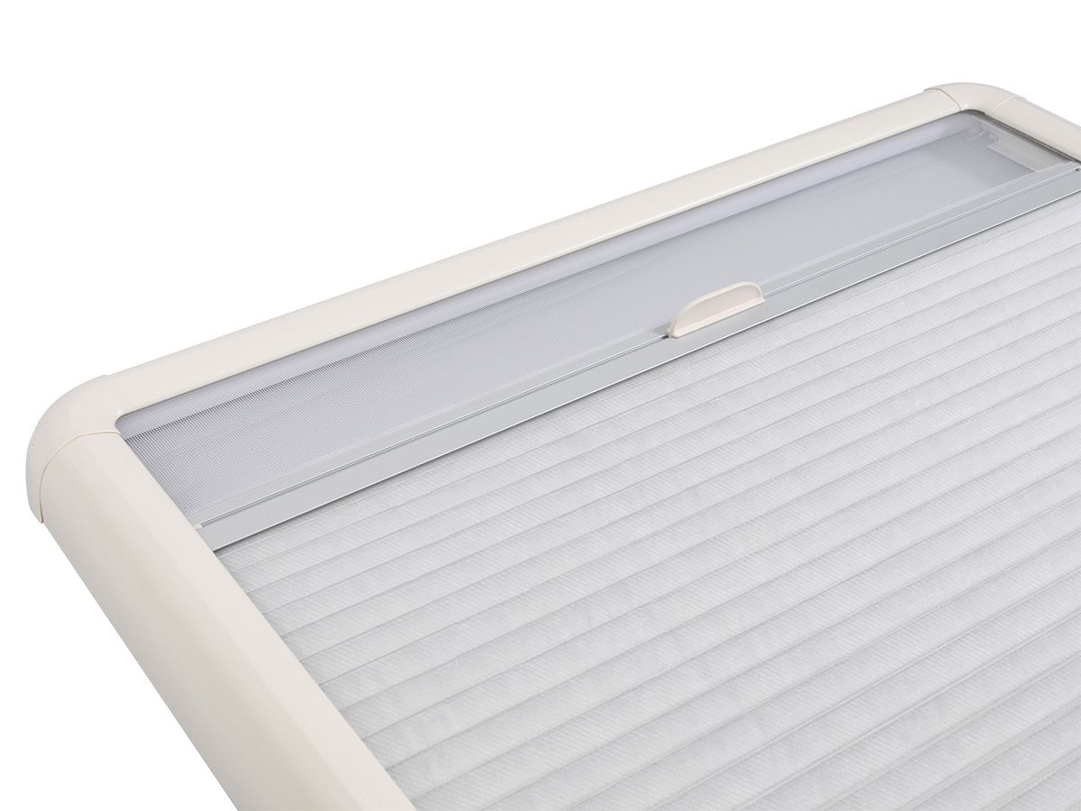 Ideal para cocinas o ventanas pequeñas. Este producto combina una mosquitera y un estor en un sistema completo. Las ranuras para ventilación en el cajón ofrecen una aireación adicional: permiten la circulación de aire entre el estor cerrado y la ventana.