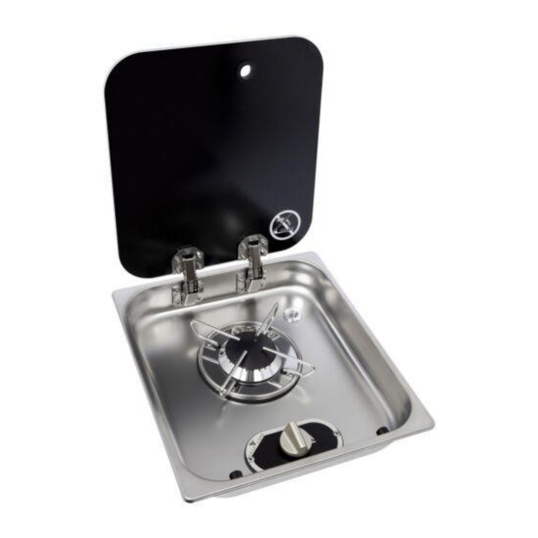 Esta cocina destaca por su diseño compacto y su tapa de cristal que permite aprovechar el espacio disponible, ofreciendo una solución eficiente y elegante para cualquier tipo de vehículo recreativo.