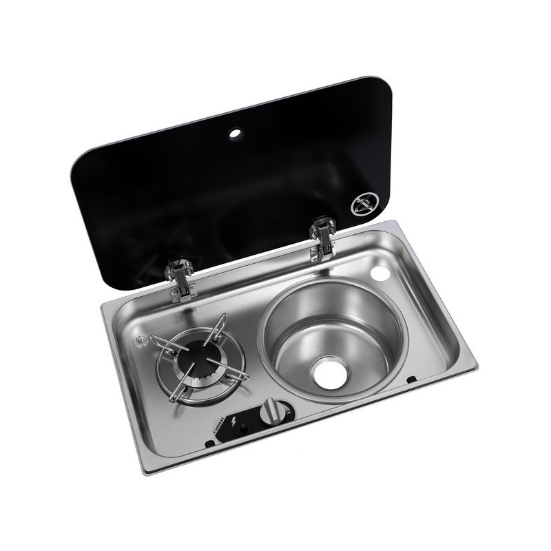 La Cocina Carbest de 1 fuego con fregadero a la derecha es perfecta para aquellos que buscan una solución compacta y práctica en su camper o autocaravana. Esta combinación permite optimizar el espacio y tener una zona de cocina y fregadero integrada, con un diseño funcional y moderno.