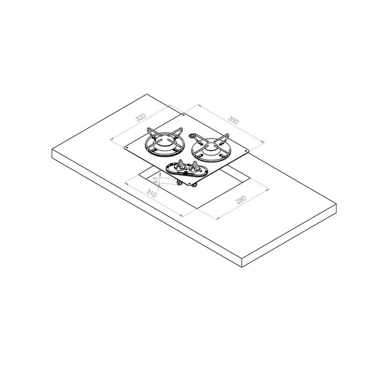 - Dimensiones de empotramiento (Ancho x Fondo): 330 x 300 mm.