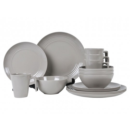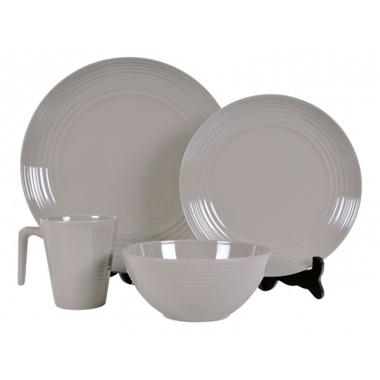 Vajilla de camping gris con textura imitando cerámica de 16 piezas.