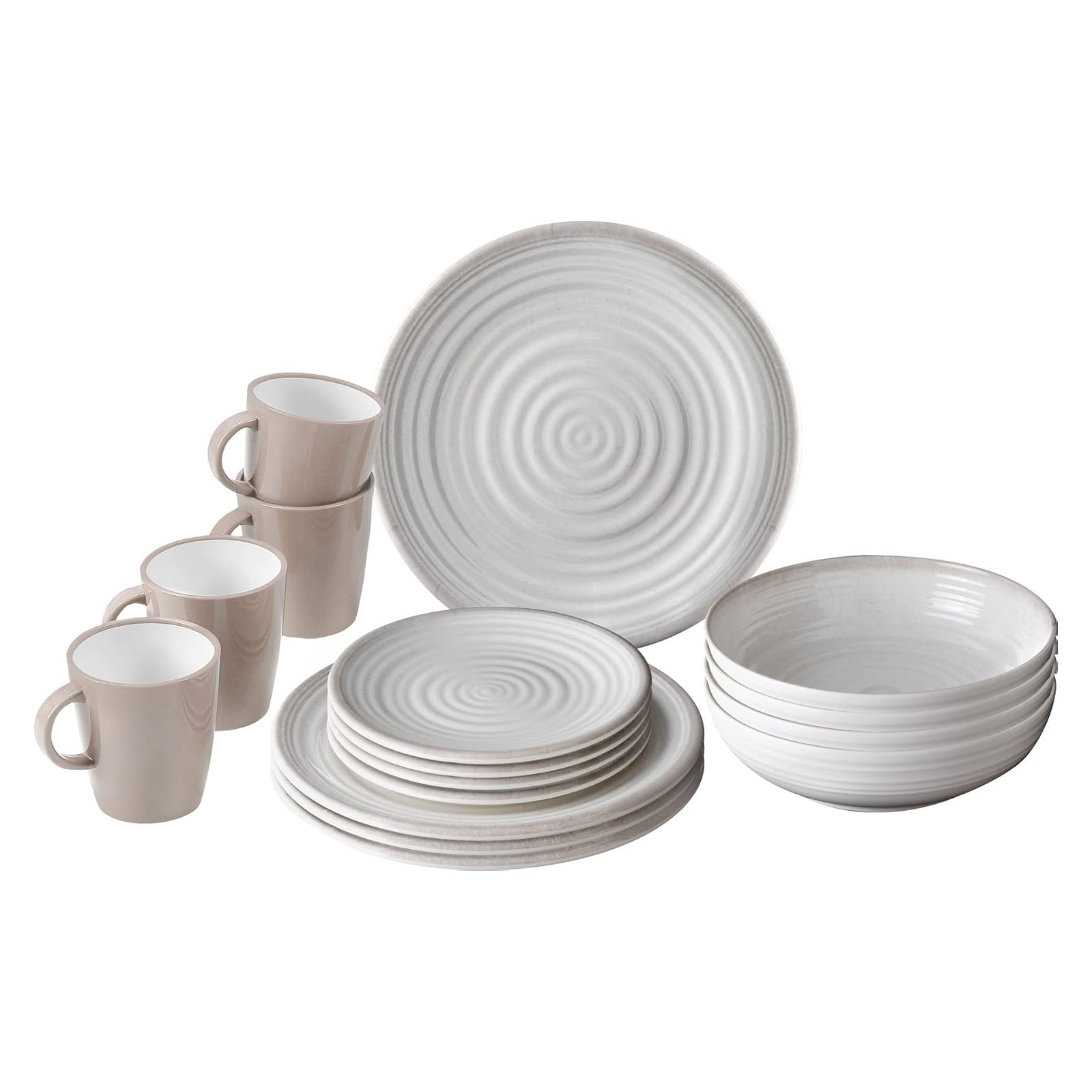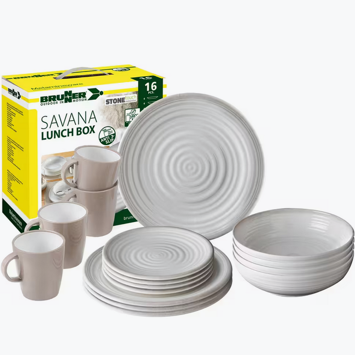 Fabricada con StoneTouch, una innovadora mezcla de melamina y minerales, esta vajilla es altamente resistente a roturas y ofrece una textura única similar a la porcelana, ideal para el camping y otras actividades en exteriores. Las tazas Hotmug incluidas están hechas de Resylin resistente al calor, soportando temperaturas de hasta 100°C, perfectas para disfrutar de bebidas calientes sin preocupaciones.