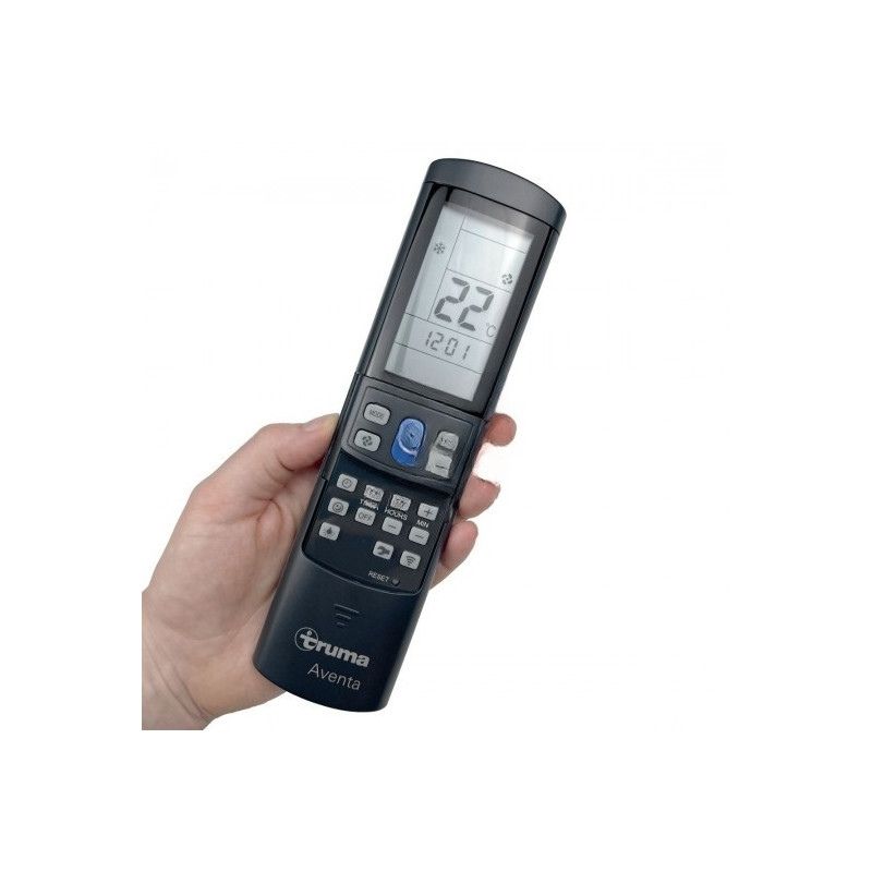 Mando a distancia universal para controlar el aire acondicionado de techo Aventa Comfort de Truma. Este control remoto permite gestionar las diversas funciones y modos del sistema de aire acondicionado de manera cómoda y sencilla.