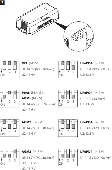 - Compatibilidad Total: Este controlador es compatible con diferentes tipos de baterías, incluyendo LiFePO4, AGM, gel y húmedas. El selector integrado permite adaptar fácilmente el SC480 a tus necesidades específicas.