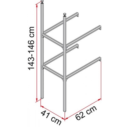 - Dimensiones: 62 x 41 x 143-146 (largo x ancho x alto cm).