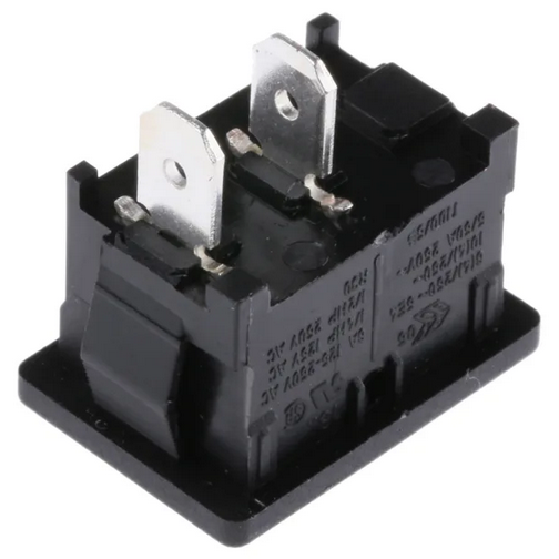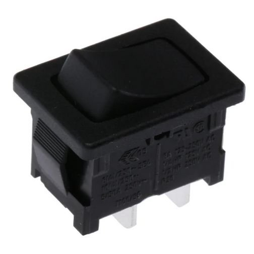 Interruptor pequeño rectangular de 2 pines en color negro.