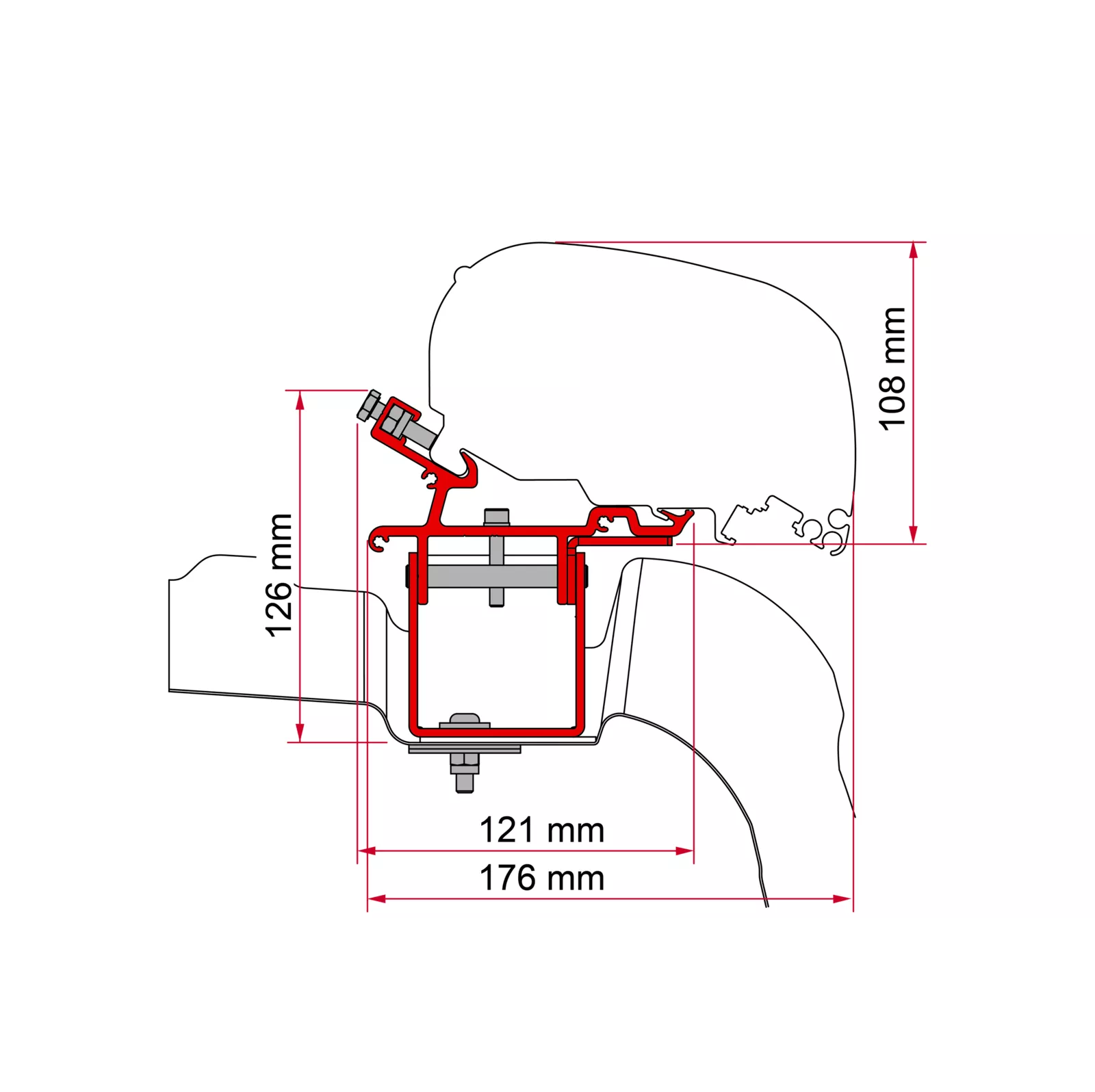 - Permite Montaje de Toldo F80/F65: Es el componente necesario para poder instalar de forma segura un toldo Fiamma F80s o F65s. La longitud máxima de toldo recomendada para esta configuración es de 320 cm.