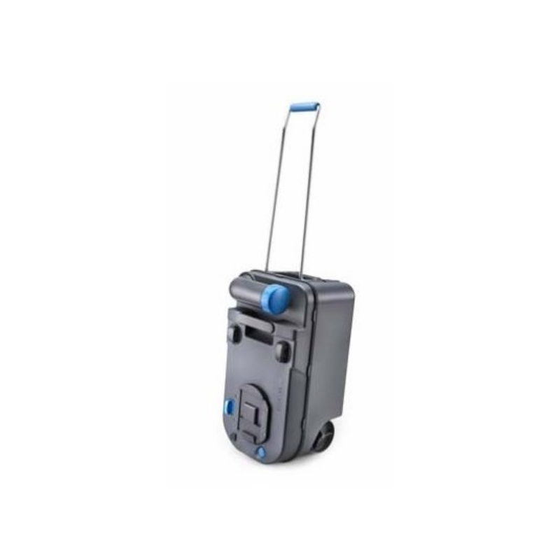 Depósito con ruedas y asa tipo trolley.