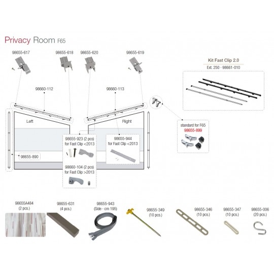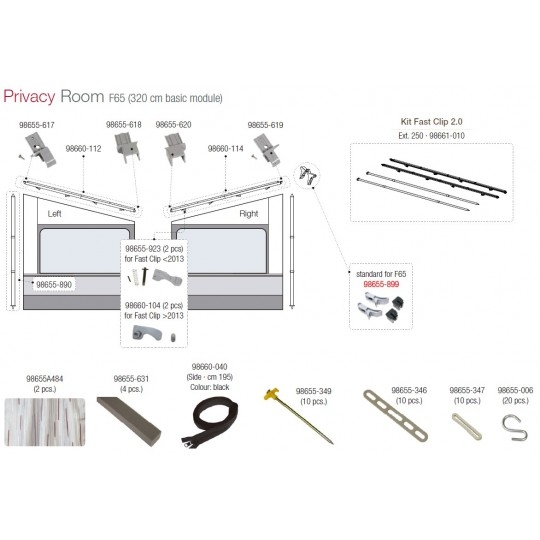 Kit para colocar los laterales de los cerramientos PRIVACY y los SIDE de Fiamma en el toldo F65.