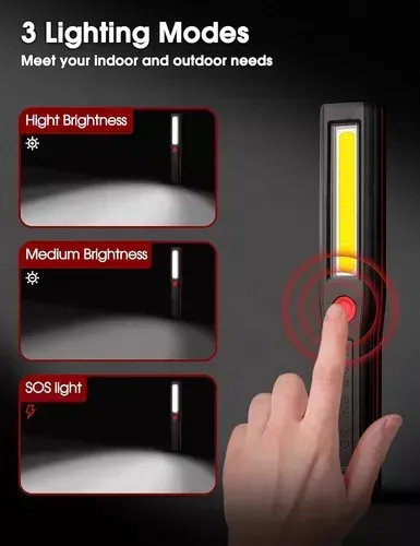 Equipada con la avanzada tecnología de chip COB, esta linterna cuenta con una base magnética resistente a los impactos, brindando una solución versátil para diversas situaciones.