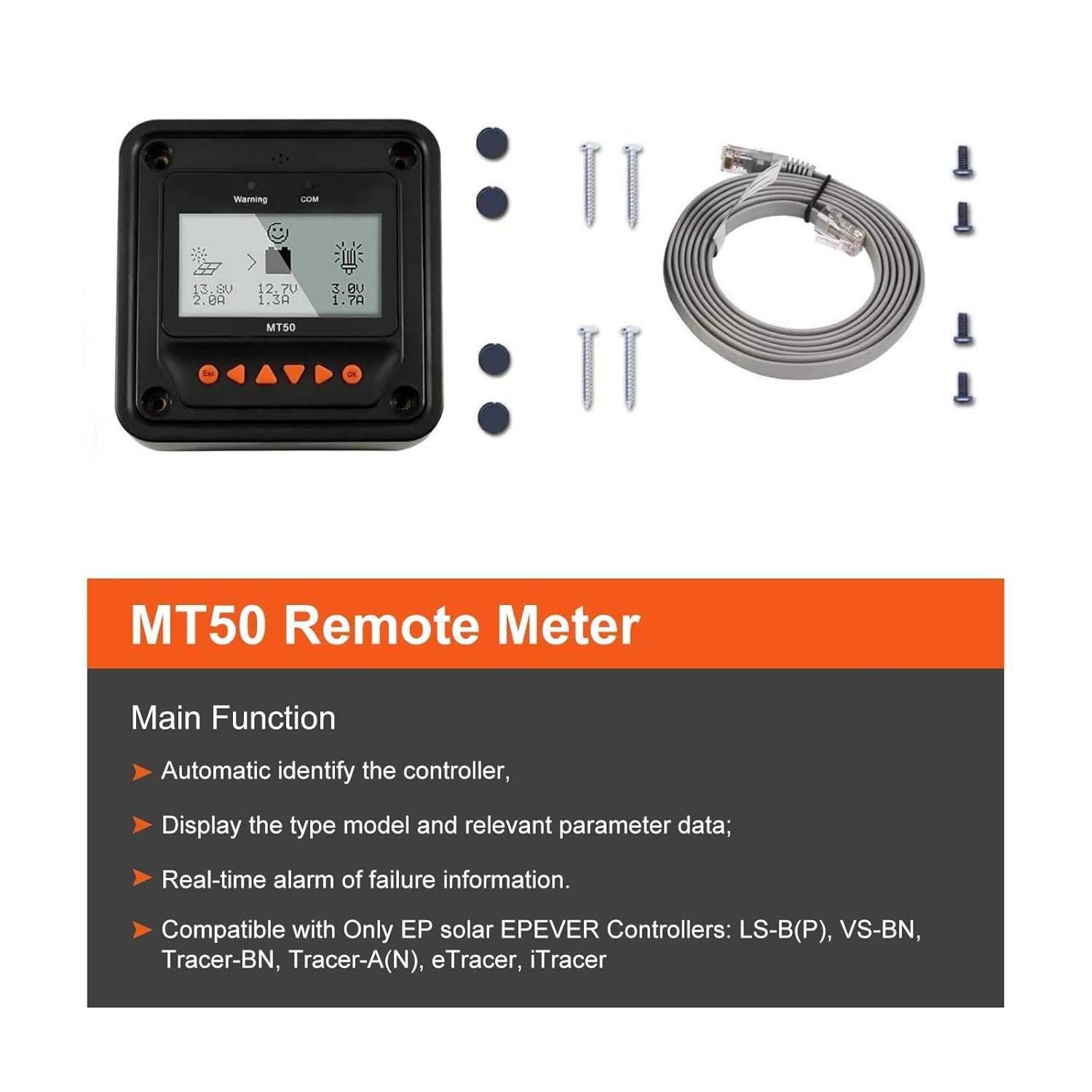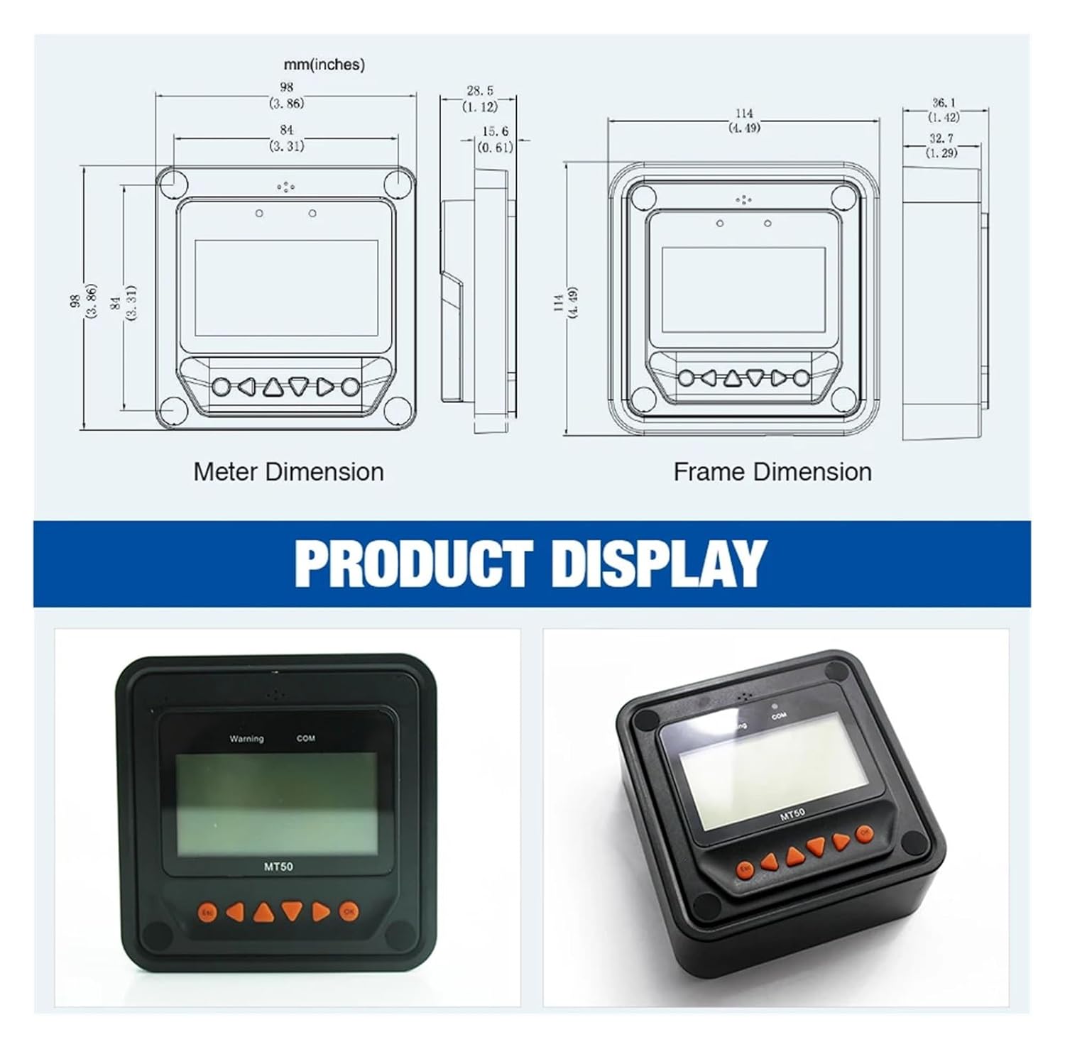 Compatible con controladores de carga 10 – 40 A MPPT de las series Tracer A, TR y PTR, y para controladores de carga 10 – 60 A PWM de las series VS, PU y LS.