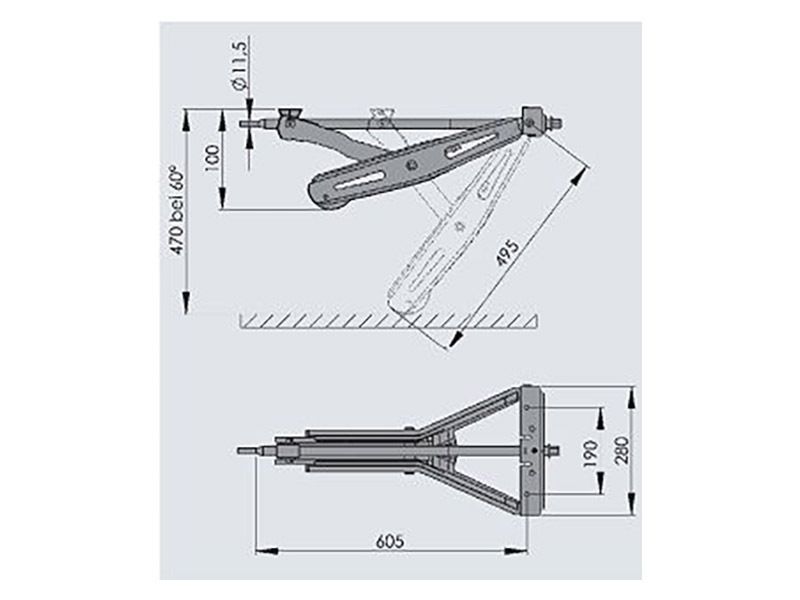 Nota: Los soportes sólo sirven para soportar la caravana. No deben utilizarse como gatos para el cambio de neumáticos o similares. La carga útil máxima se alcanza con una posición de giro de 45°. Si la posición de giro se reduce por debajo de 45°, se reduce la carga máxima.