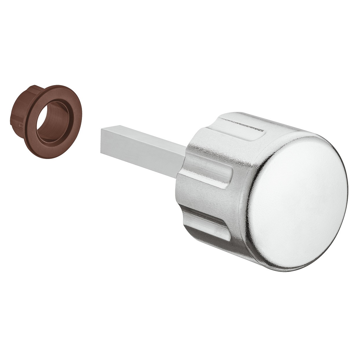 Repuesto de pomo redondo en acabado plateado, diseñado específicamente para puertas con falleba y cajetín giratorio en baños de autocaravanas o caravanas.