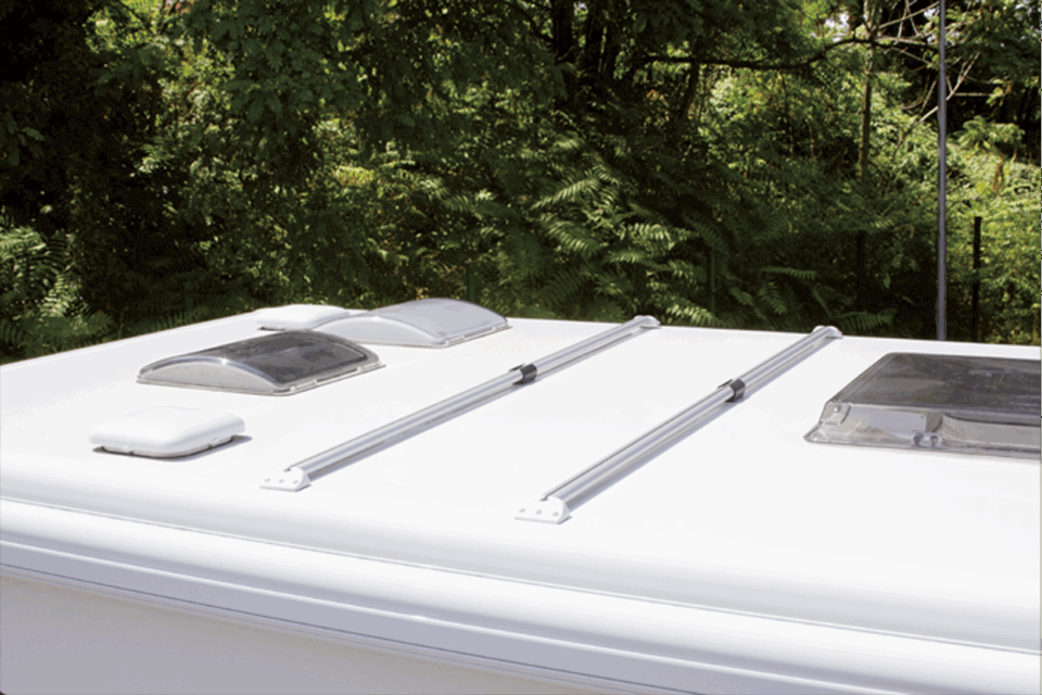 Dispositivo ideal de apoyo para colocar paneles solares o cofres portaequipajes.