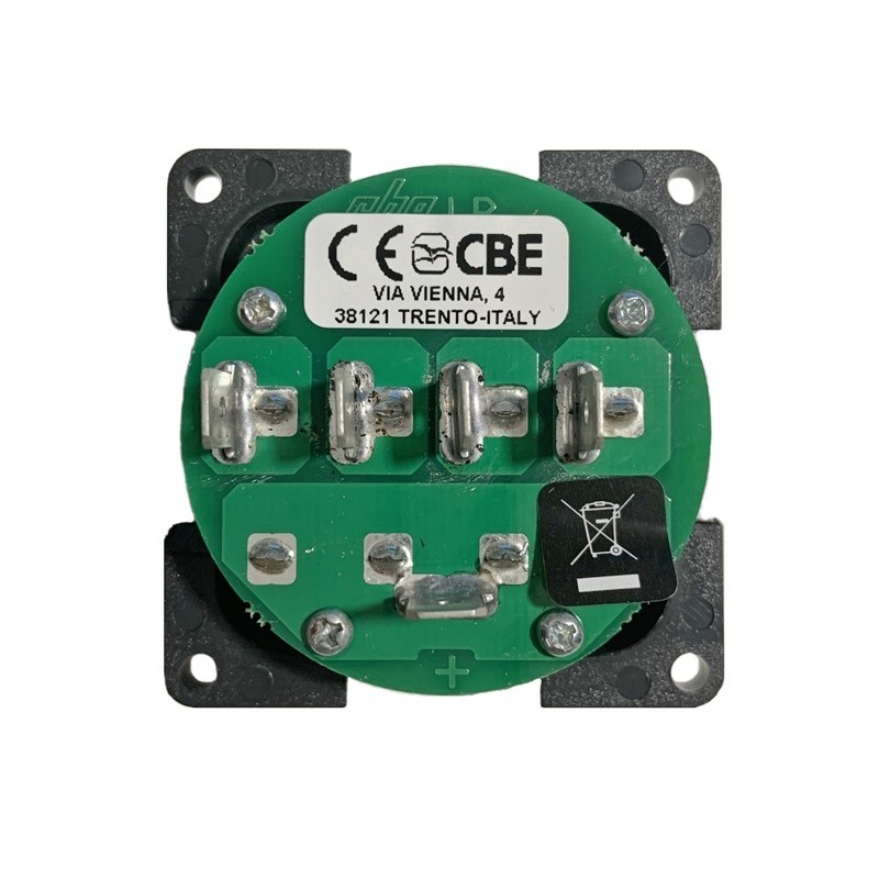 Alimenta al módulo a través de un terminal que a su vez alimenta los cuatro circuitos con fusibles a través de una barra colectora.