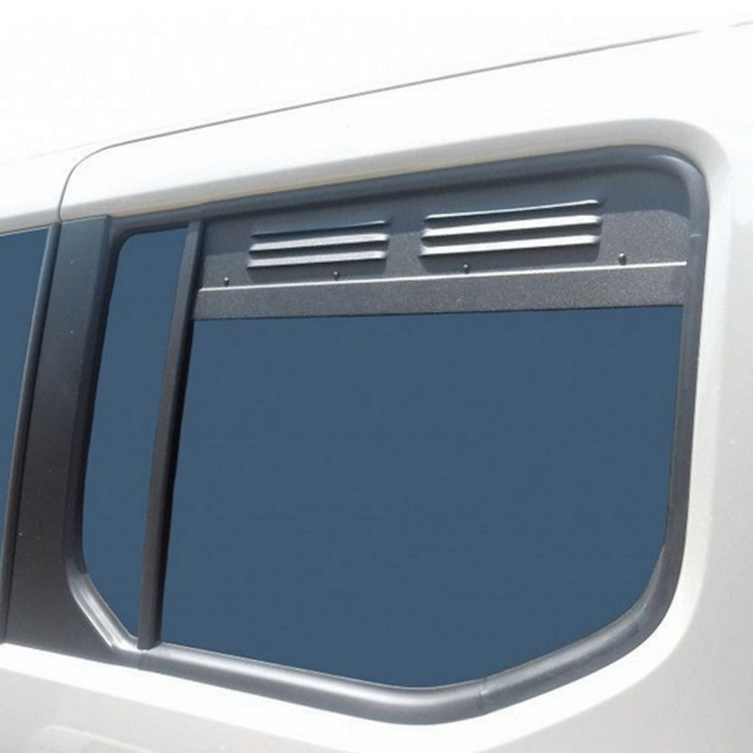 Juego de 2 rejillas de ventilación para las ventanas laterales traseras de Peugeot Rifter, Citroën Berlingo, Opel Combo y Toyota Proace City (fabricados desde 09/2018). Permiten una ventilación segura y a prueba de lluvia con el vehículo cerrado, ideal para camperizaciones, mascotas o simplemente para renovar el aire.