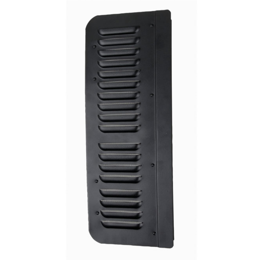 Rejilla de ventilación para ventana corredera izquierda (detrás del conductor) de vehículo en color negro.