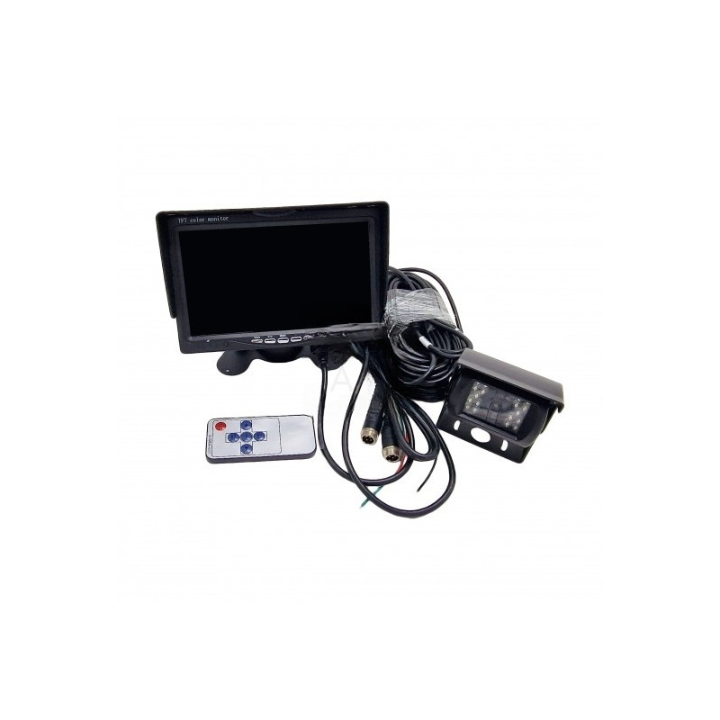Conjunto de retrocámara con monitor, cable y cámara para autocaravanas.