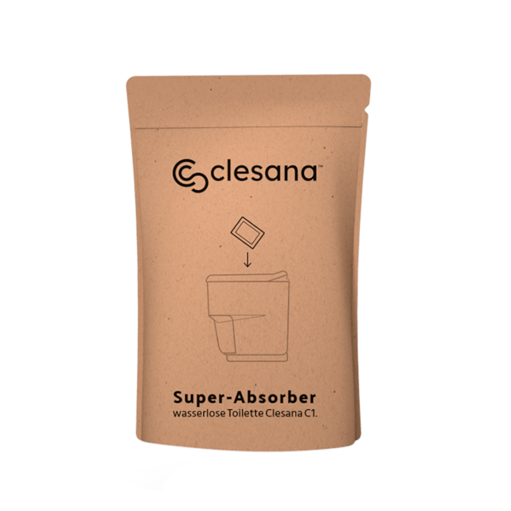 Bolsas superabsorbentes diseñadas para el inodoro sin agua Clesana C1. Son la solución opcional e ideal para la gestión de los residuos líquidos (orina), ya que aglutinan y solidifican el líquido de forma fiable, facilitando su manejo y eliminando olores.