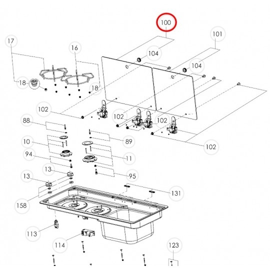 Tapa cristal izquierda para cocina con seno Dometic/Smev: