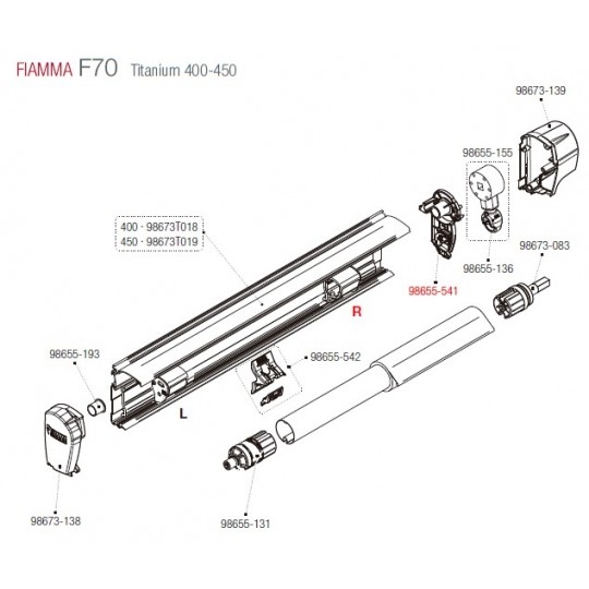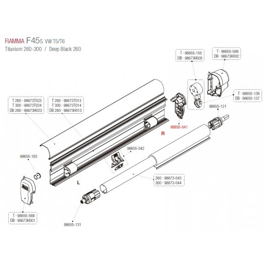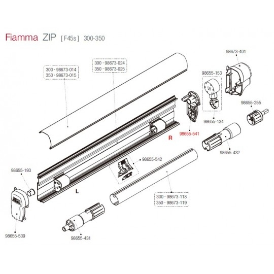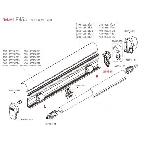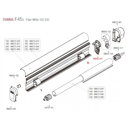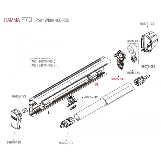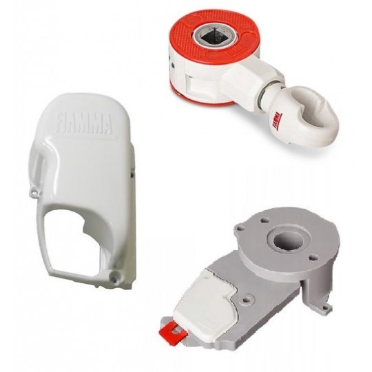Repuesto de kit completo de tapa, contratapa y molinete con ojal para parte derecha de toldo.