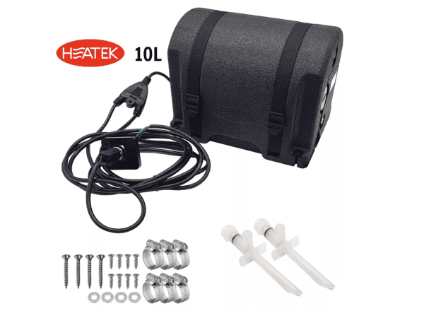 El Termo Heatek 10 litros 230V es un calentador de agua de alta calidad especialmente diseñado para campers, caravanas, autocaravanas y embarcaciones. Tiene una capacidad de 10 litros, con un tanque de acero inoxidable de alta durabilidad que ha sido probado hasta 5 bares de presión.