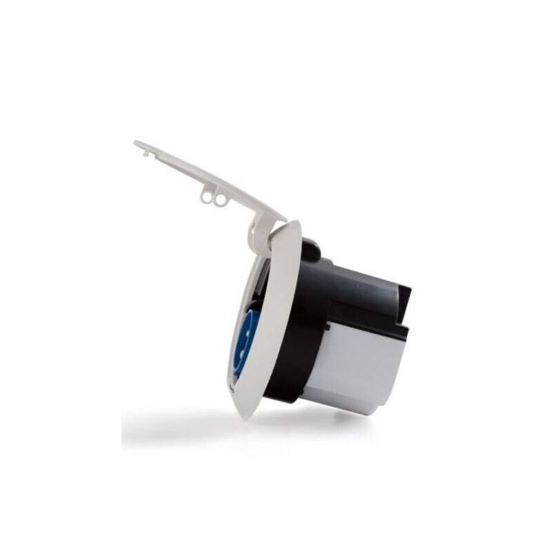 Esta toma de corriente es ideal para obtener electricidad de fuentes externas en campings, garajes o áreas donde se requiere conectarse a la red eléctrica. Su diseño redondo con bisagras asegura una integración armoniosa con la estética del vehículo, mientras que las características de seguridad protegen el sistema eléctrico en todo momento.