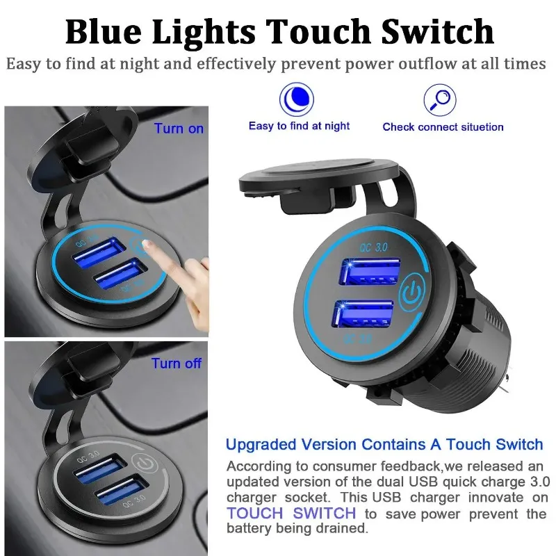 Toma usb para con dos puertos de carga de 18W / 3A QC3.0.