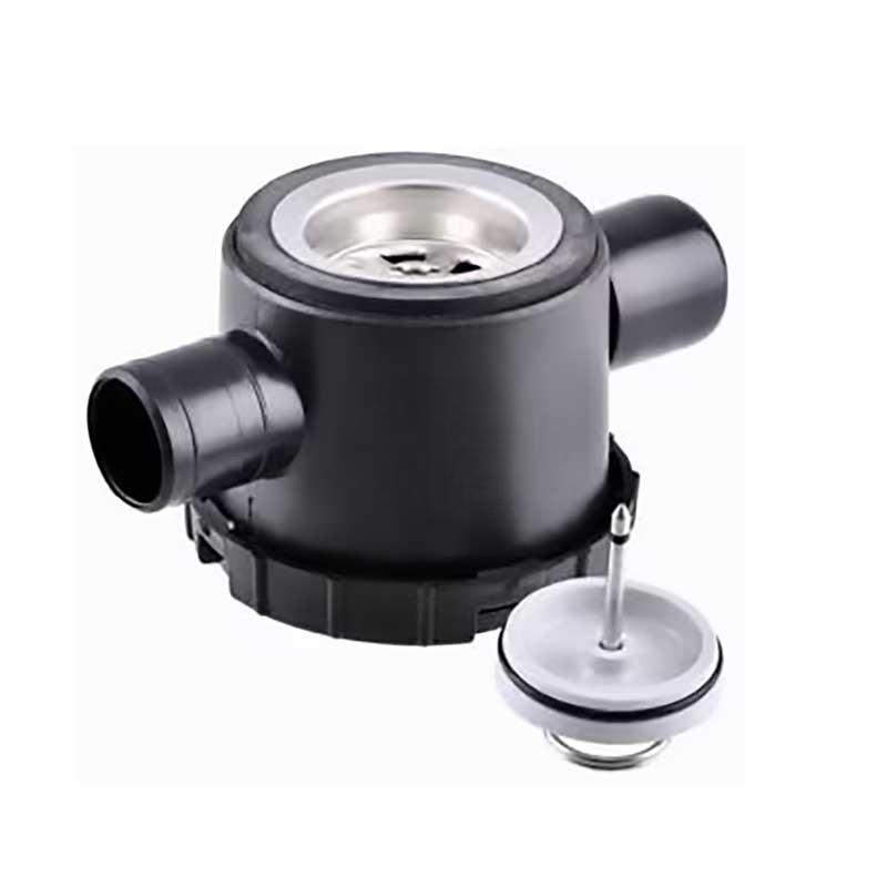 Desagüe con sifón y codo doble – Salida 25 mm – Tipo F Este sistema de desagüe con sifón y dos salidas en ángulo de 90º, con acabado metálico, es perfecto para fregaderos y lavabos metálicos. Incorpora un tapón que permite bloquear una de las salidas. Este desagüe ayuda a prevenir malos olores en tu fregadero o lavabo de camping.