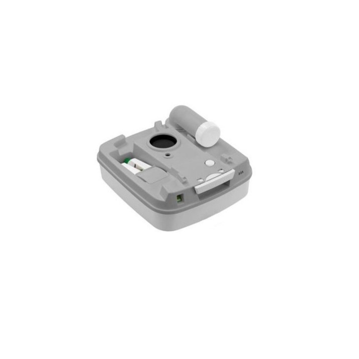Modelo básico de inodoro portátil con una altura de asiento natural y un depósito de residuos de alta capacidad.